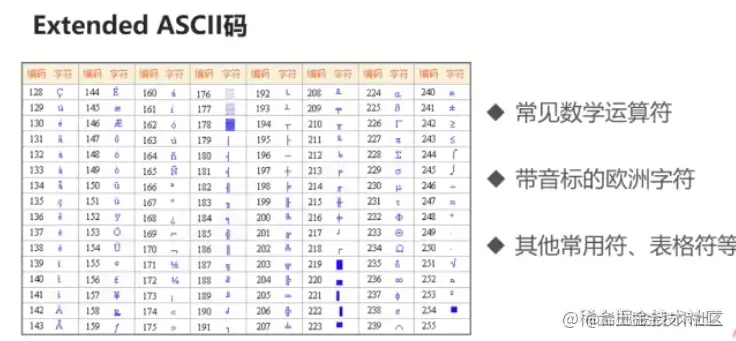 由于很多应用或者国家中的符号都无法表示,则第一次对ASCII码进行扩充:7bits=>8bits