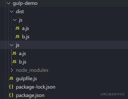 - 完整项目目录:gulp-demo(压缩js)