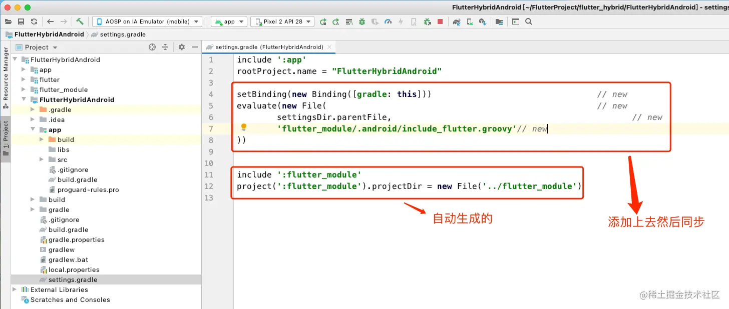 新创建的 FlutterHybridAndroid项目和 flutter_module项目放在同一级