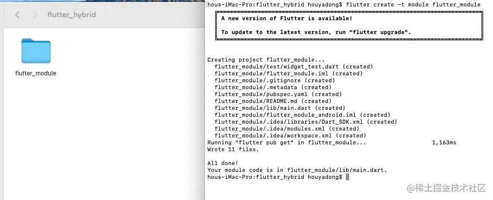 上面的代码会切换到你的Android项目的上一级目录,并创建一个flutter模块