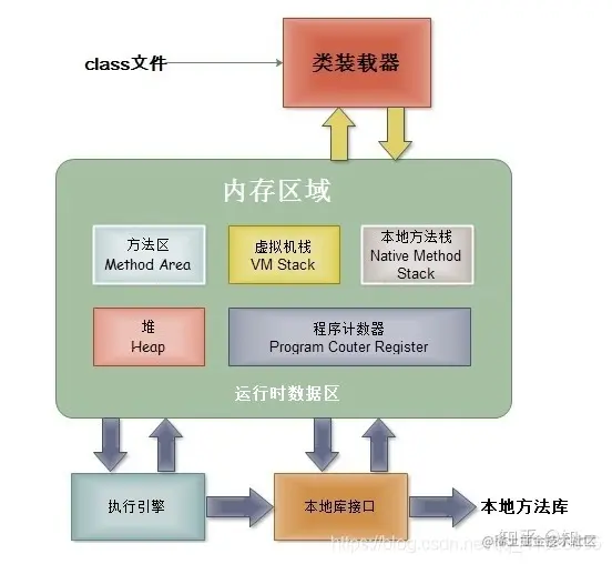 这样咱们就有了一个清晰的了解,简单的说,类加载器负责提前加载.class文件到内存中,执行引擎负责将字节码转化为对应平台上可运行的机器码。