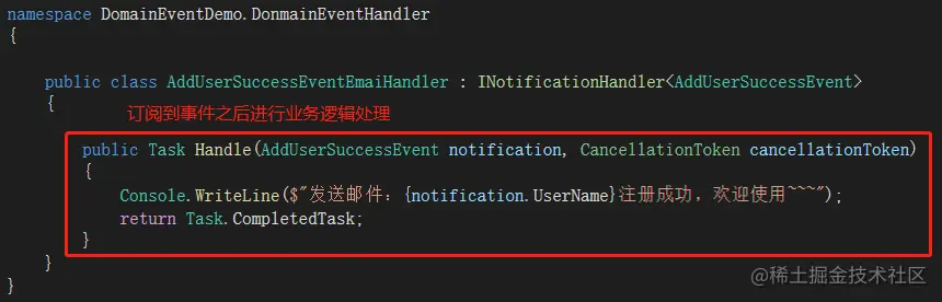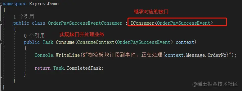 关于领域事件和集成事件的介绍和使用暂时先说这么多,只是简单介绍了我对领域事件和集成事件的理解及应用,更多细节还得小伙伴根据实际业务需求进配置和改进,但用法就是这么简单;对于消息丢失、持久化等相关问题,后续会跟随消息队列的文章分享出来。