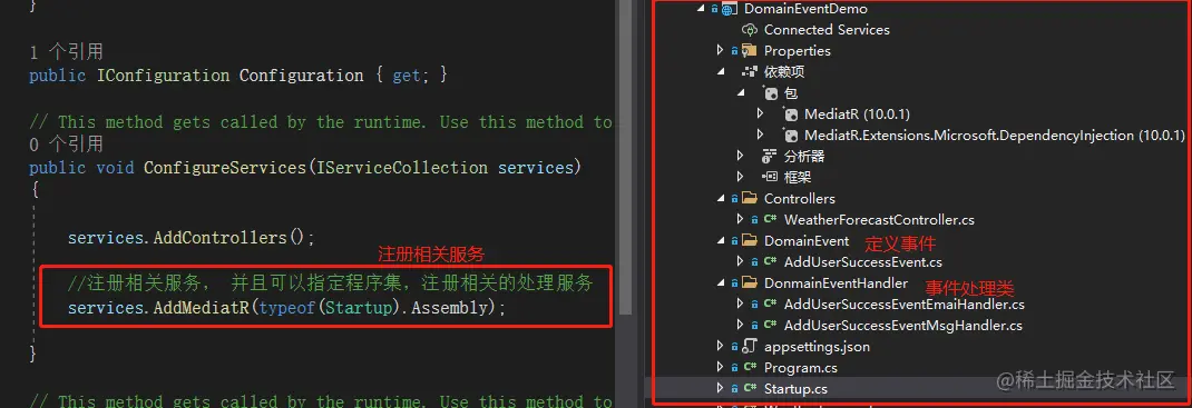 这里就不详细说了,详细说明小伙伴们可以看我之前分享的这篇文章《跟我一起学.NetCore之MediatR好像有点火》