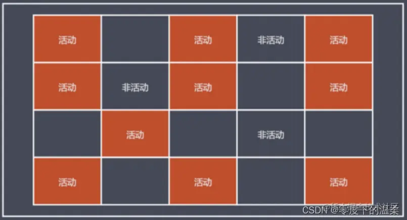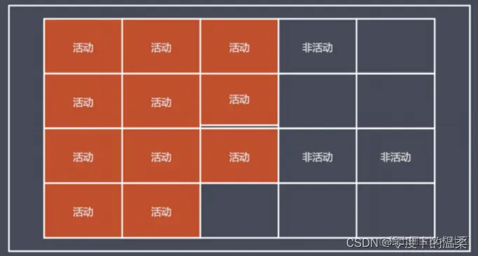 可以看到在进行垃圾回收前,活动空间和非活动空间是混杂的。而在确定进行回收后,标记整理会对空间进行归类整理,将活动空间和非活动空间统一整理到一起,形成下图的结果: