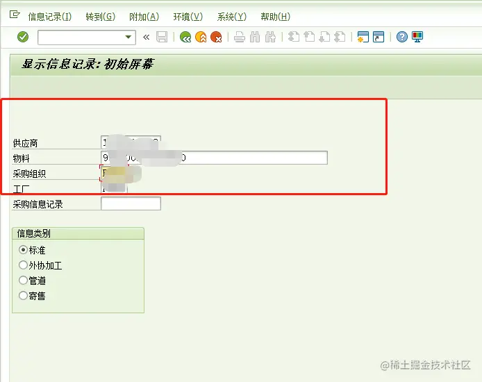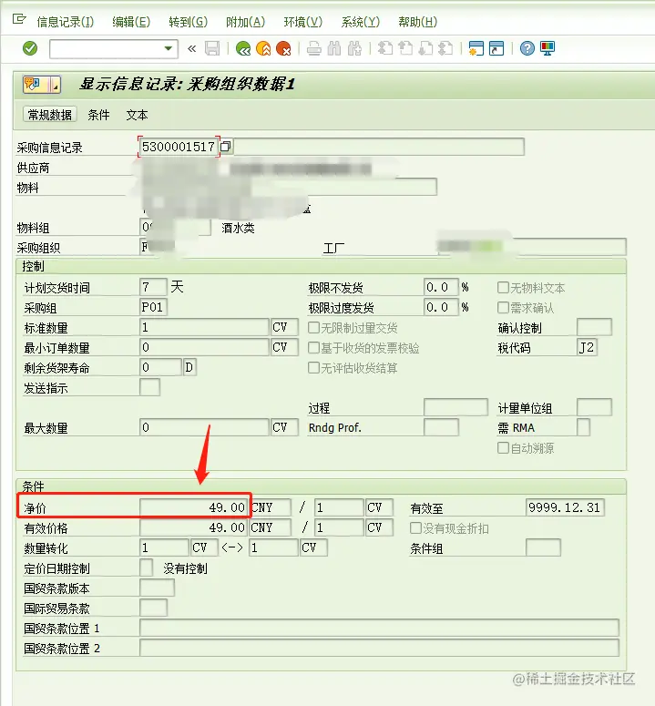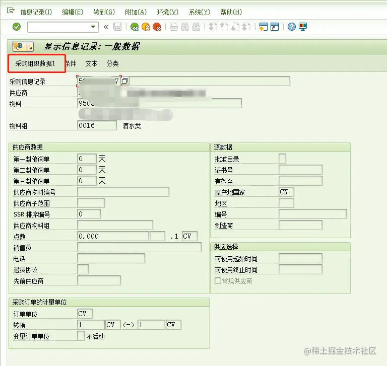 进入界面后,点击【采购组织数据1】,进入价格界面: