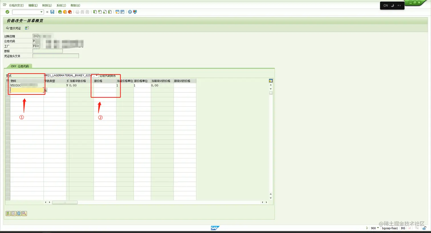 ① 物料:输入你需要赋予价格的物料号