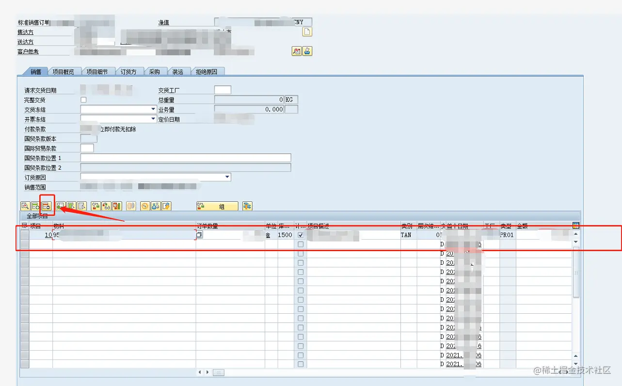 5、发布完成后,再将SD销售订单行内涉及价格为0的物料行,删除,重新录入再交货即可。