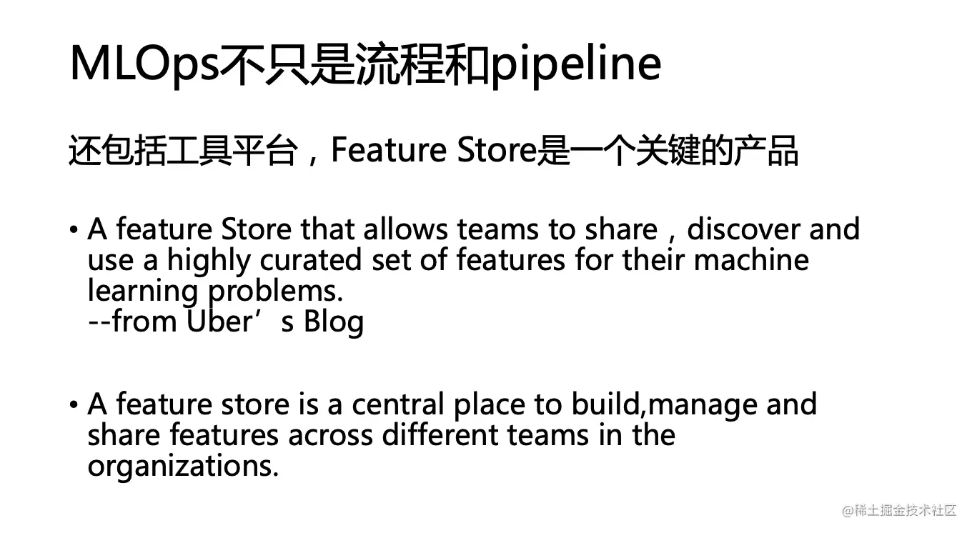 MLOps不只是流程和Pipeline,还包括工具平台,而本次活动所讨论的重点FeatureStore,则是MLOps领域中的关键产品。它是一个构建、管理、共享机器学习所需特征的平台。
