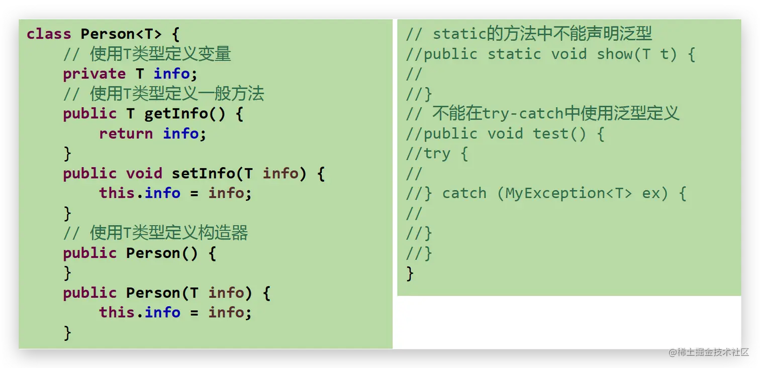 - 泛型类的构造器如下:public GenericClass(){}
