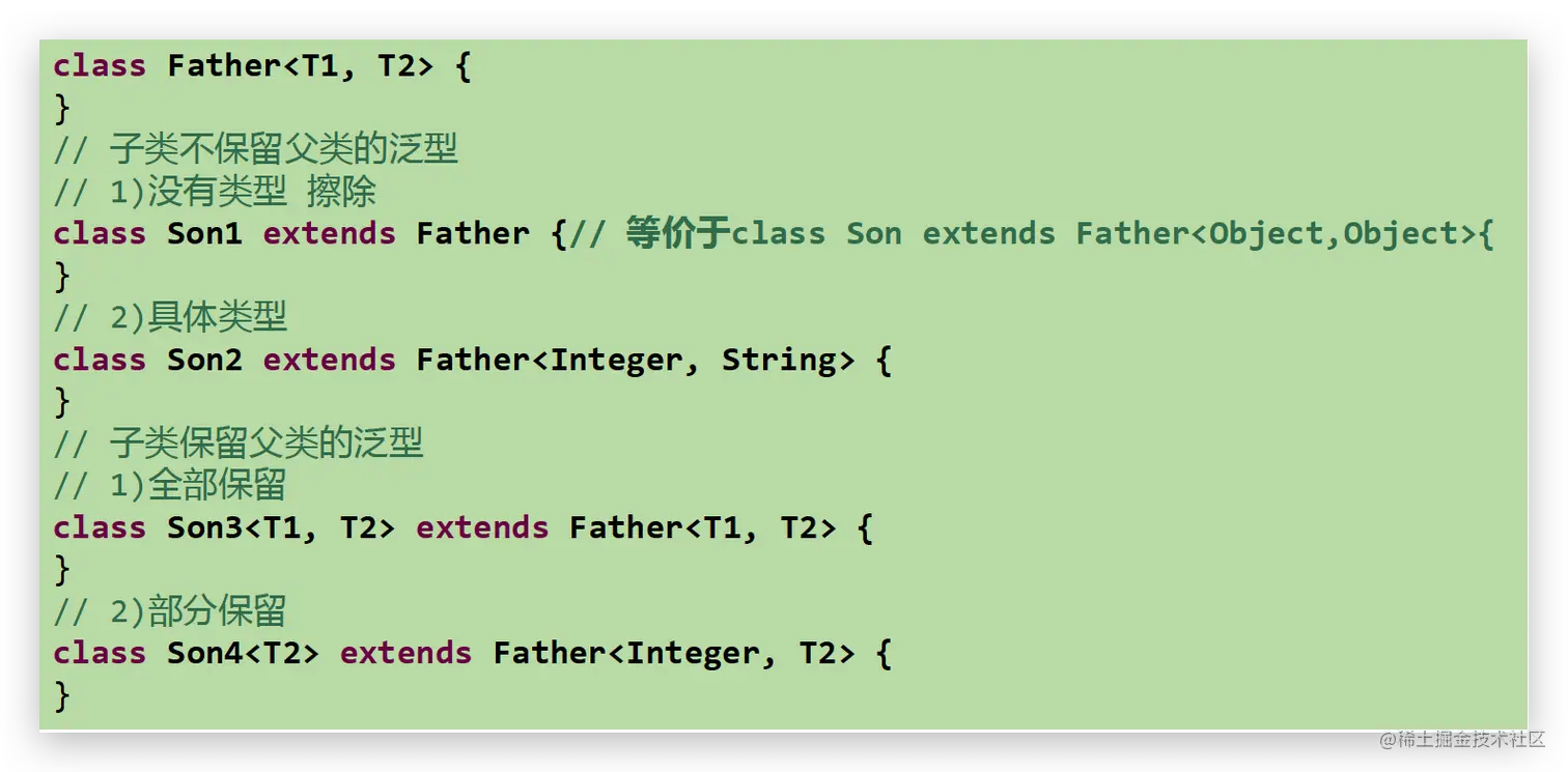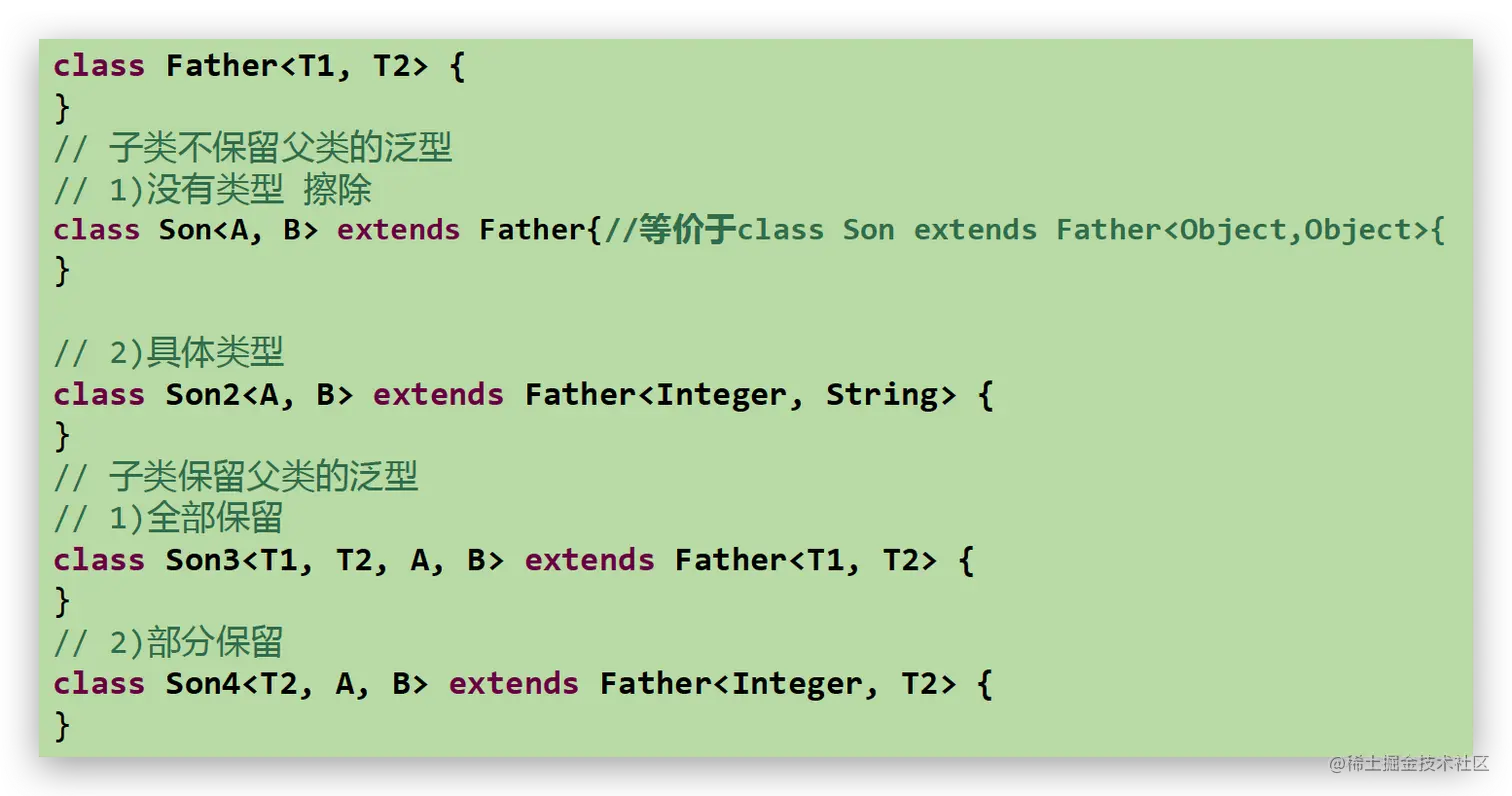 - 子类不保留父类的泛型:按需实现