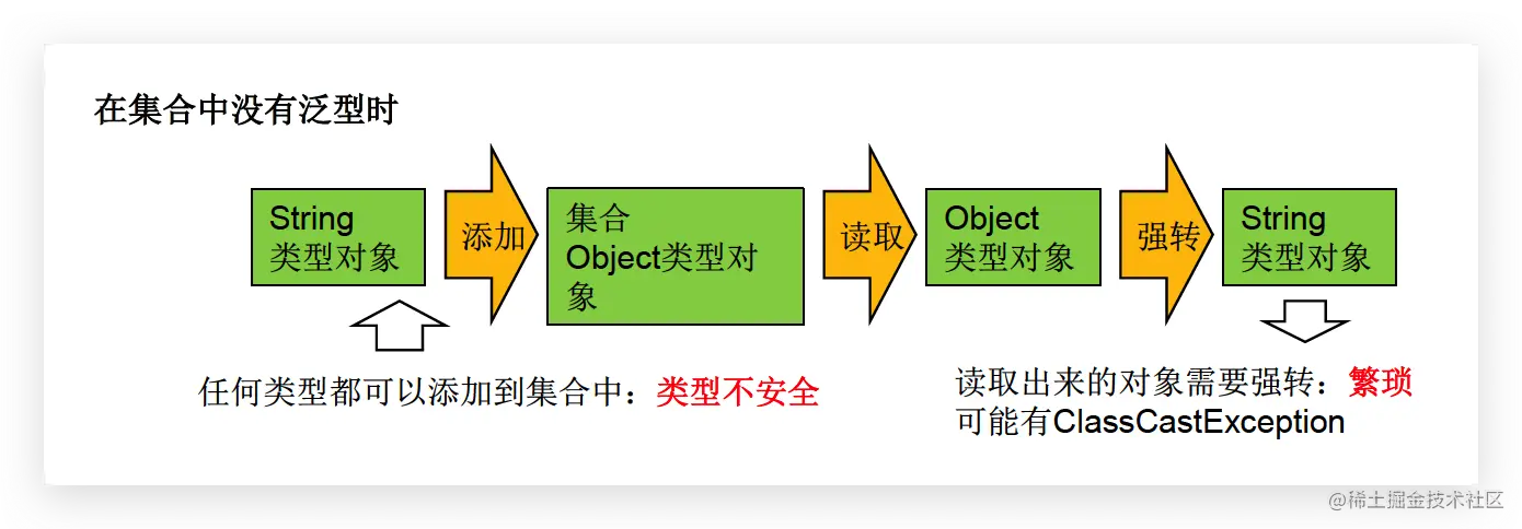 - 将任意元素加入到其中不是类型安全的: