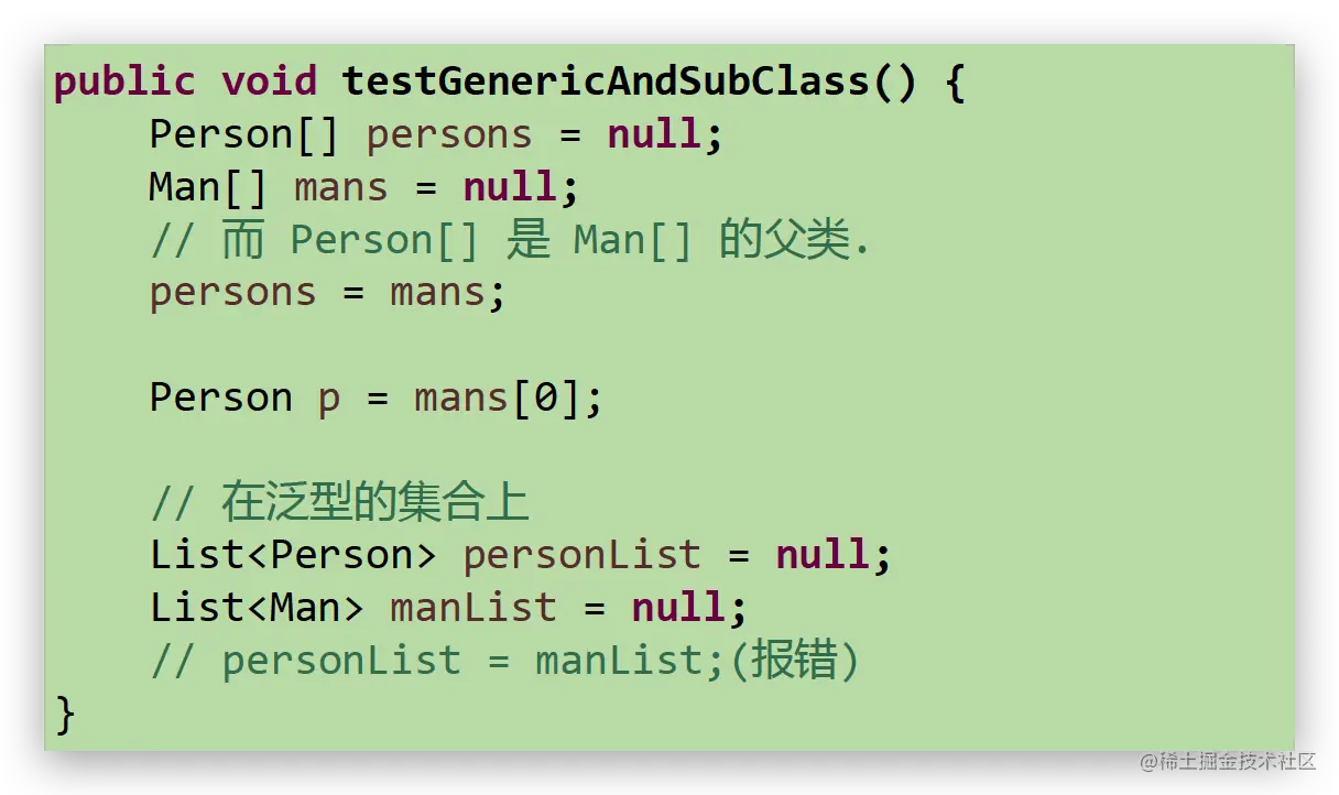- 泛型不同的引用不能相互赋值。