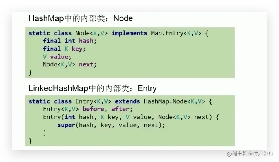 - 原因:在原有的HashMap底层结构基础上,添加了一对指针,指向前一个和后一个元素。