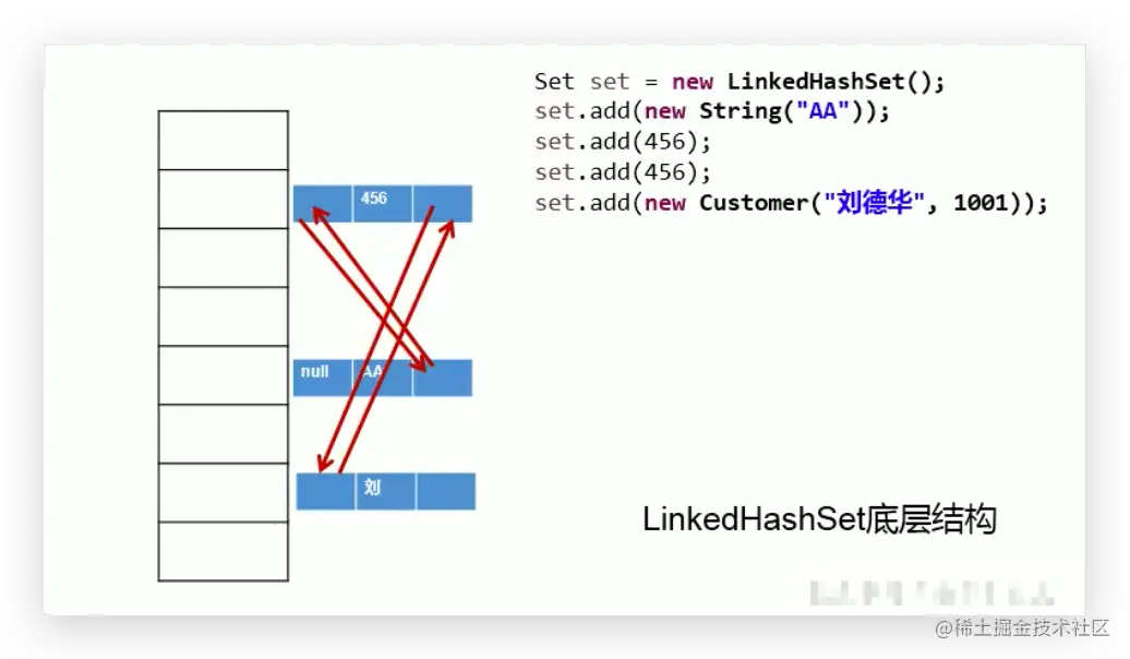 - LinkedHashSet根据元素的hashCode值来决定元素的存储位置,但它同时使用双向链表维护元素的次序,这使得元素看起来是以插入顺序保存的。