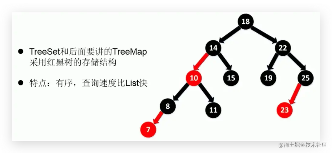 - TreeSet底层使用红黑树结构存储数据。