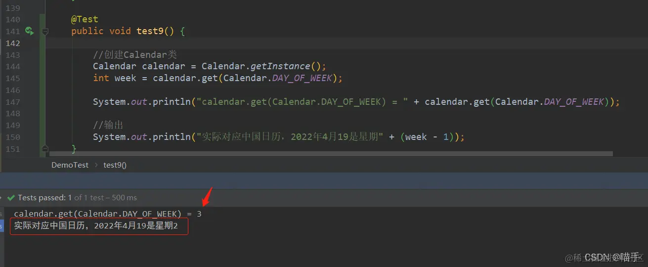 具体给大家演示一下:2022年4月19日日历显示星期二,如果使用Calendar.DAY_OF_WEEK获取到值应该是3,我们通过代码来验证一下: