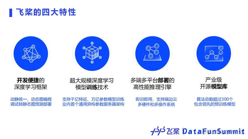 面对这些挑战,飞桨实现了四大特性,下面将分别详细介绍。