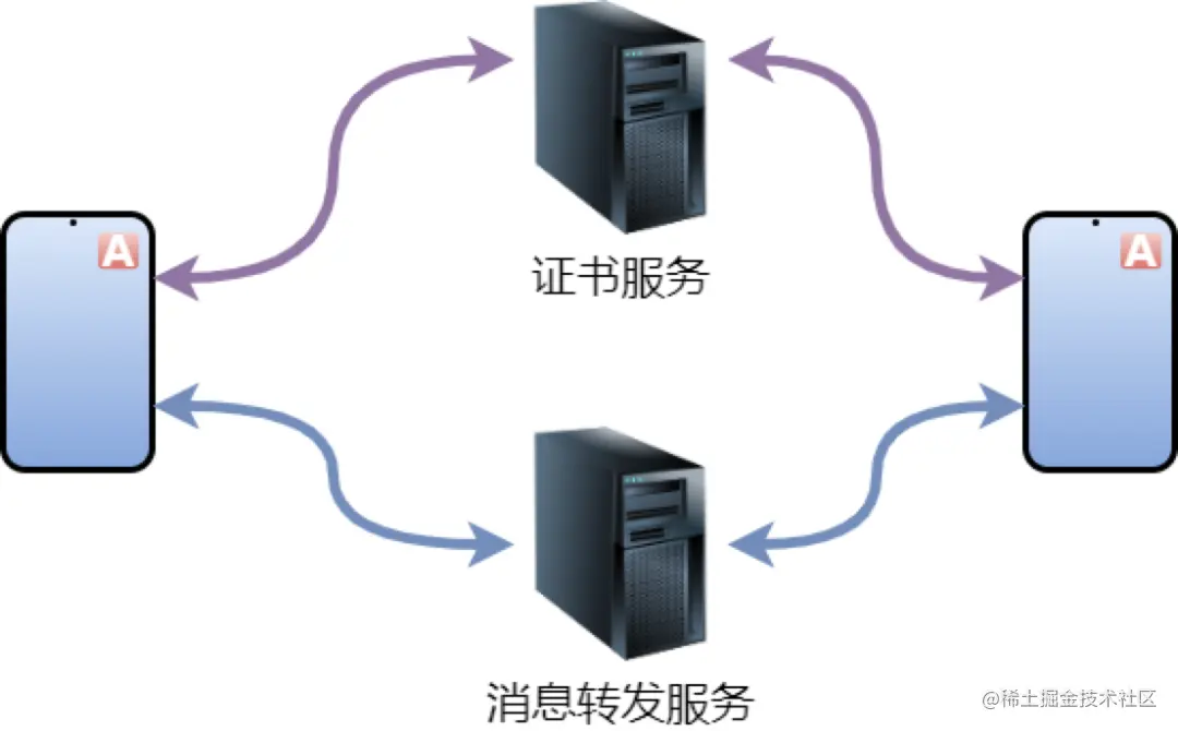 3. 首次给对方发送消息或首次接收到对方消息时,便到证书服务器查询对方的公钥。