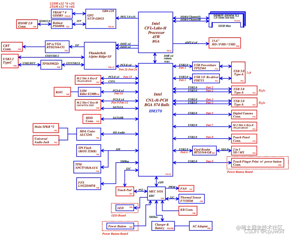玩驱动,怎么能没有原理图。找到一个看笔记本主板原理图的,虽然这里的平台CFL,CNL都很老,但是相对于我脑中装的对Intel的理解,这绝对是很先进的图纸。