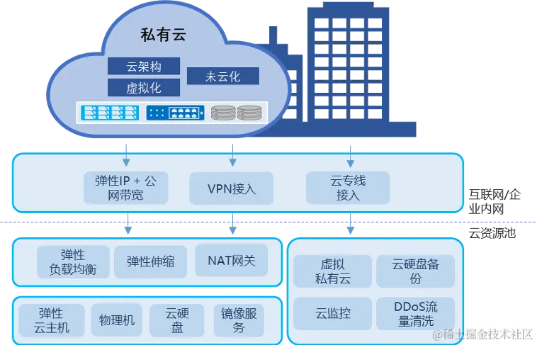 +网络+数据库+存储+安全服务。实现企业BI业务,ERP,OA,智能调度,能源管控、智慧收银、健康监测、ADAS等核心业务上云,完成全业务系统的云承载。