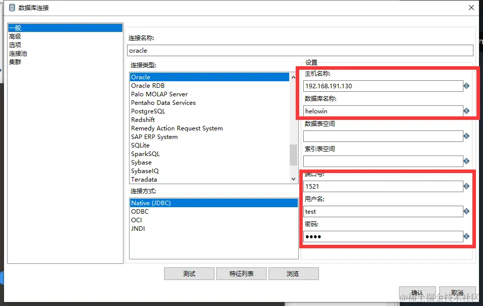 还是表输入控件,双击控件,新建数据源,查询sql,说一下oracle数据库的连接(使用的是oracle11g)