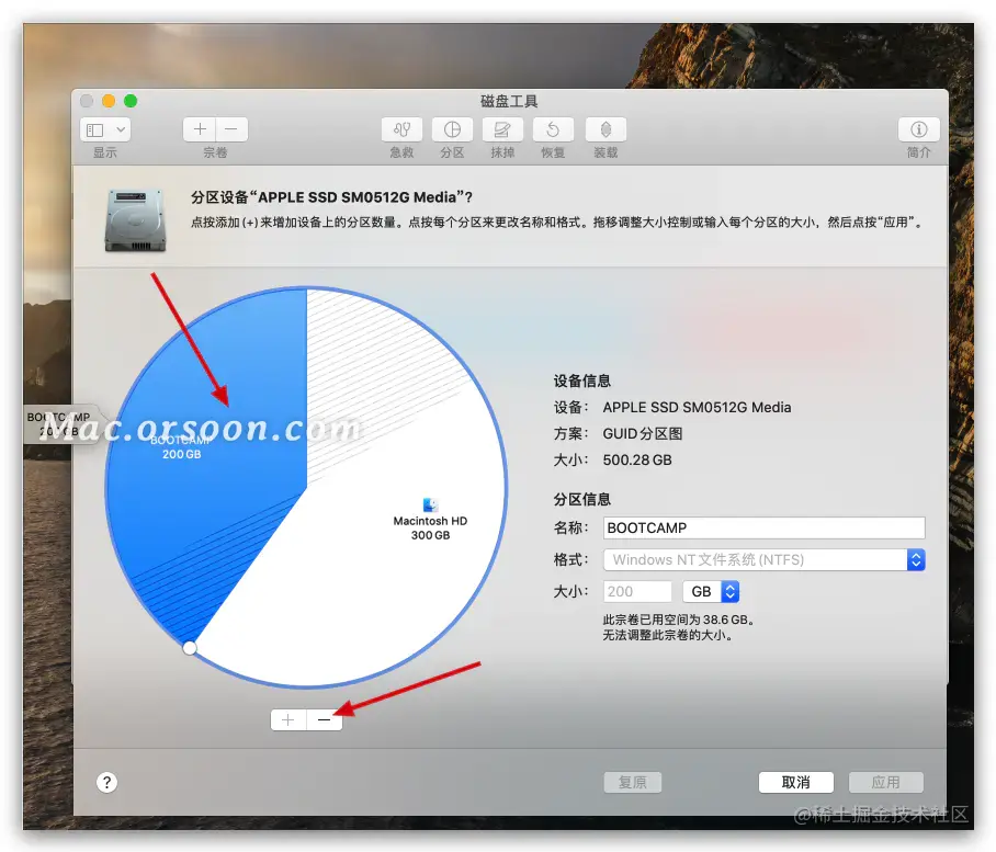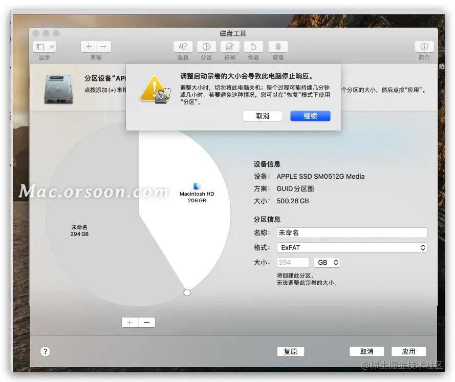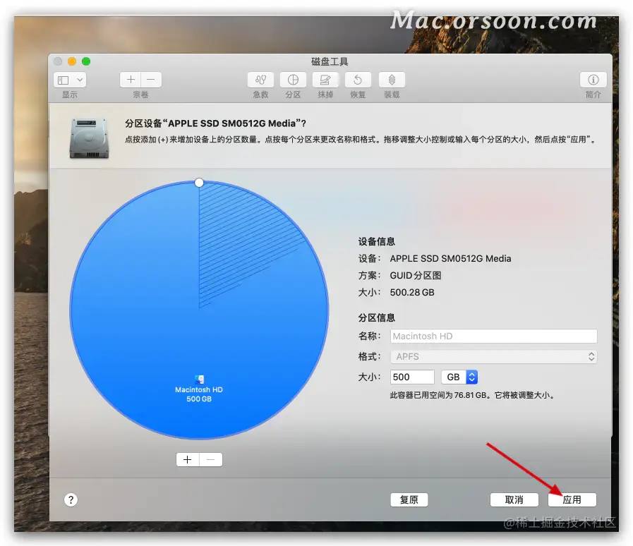 调节好自己想要的大小之后,如果是需要安装Windows的话,就需要改一下那个格式 改成EXFAT,最后点击应用。
