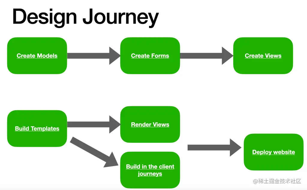 在这个阶段,我们可以理解我们作为应用程序的设计者要经历的事情。了解Django架构--这些是我们要遵循的步骤。
