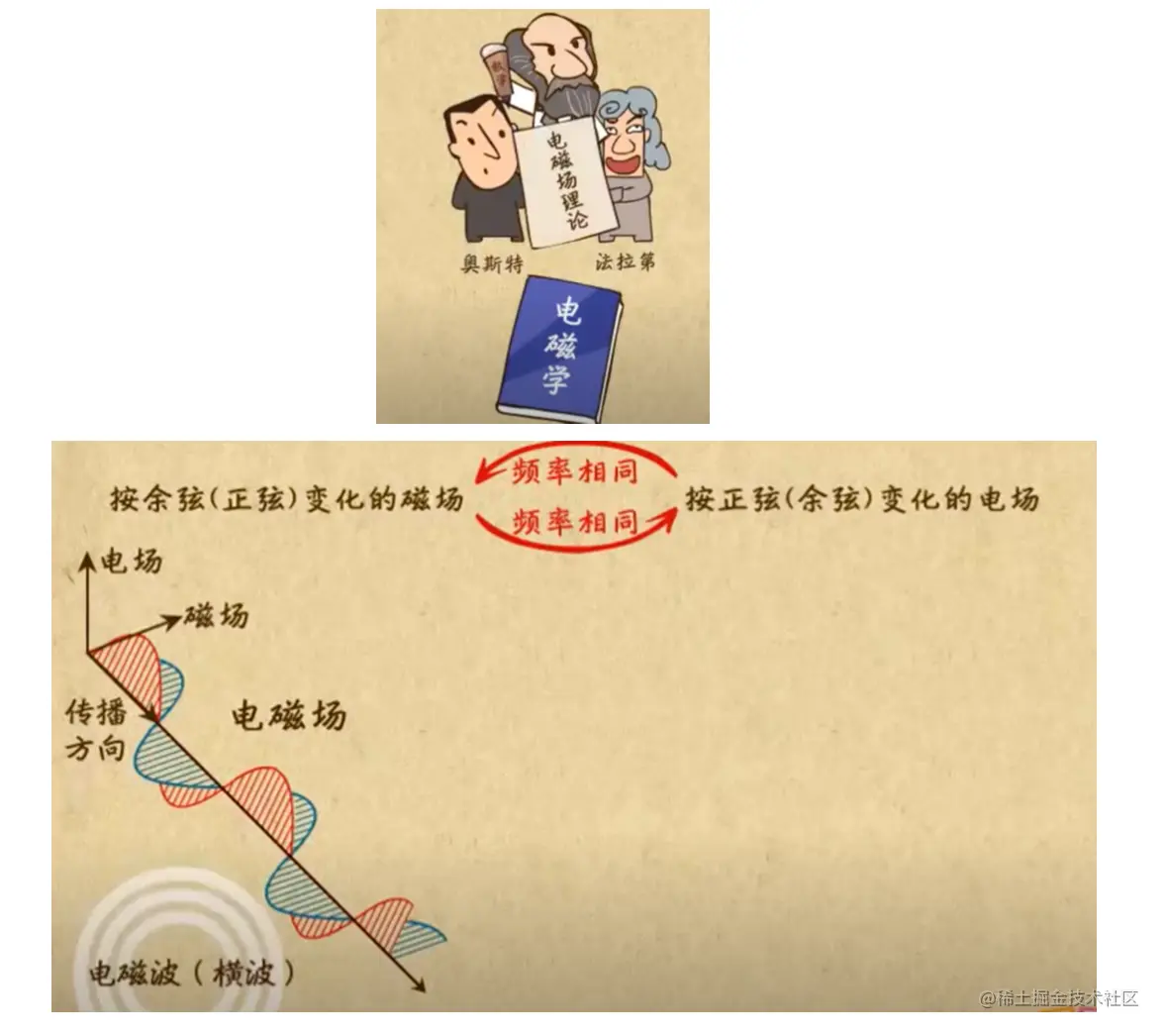 1887年,赫兹通过发明火花振荡器做实验,证明了电磁 波的存在。 后续开启了电磁波通信的时代,