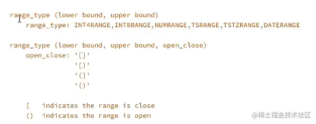 SELECT INT4RANGE(1, 6) AS “DEFAULT [(“,