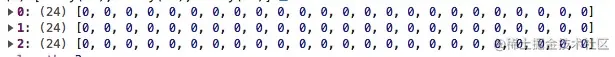 - 根据grid的行列配置,生成对应的二维数组, 如24列 3行的grid就是[Array(24) * 3], 用0填充整个二维数组,初始效果如下