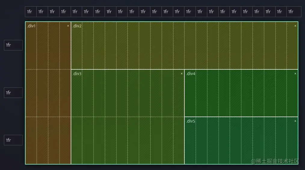 .div1 { grid-area: 1 / 1 / 4 / 5; }