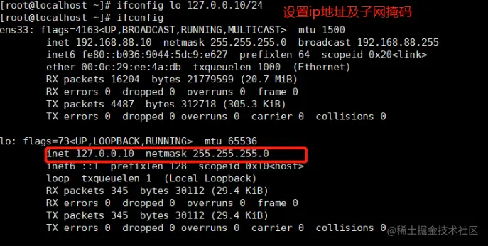 ifconfig 网络接口 ip地址加/子网长度 设置网卡地址