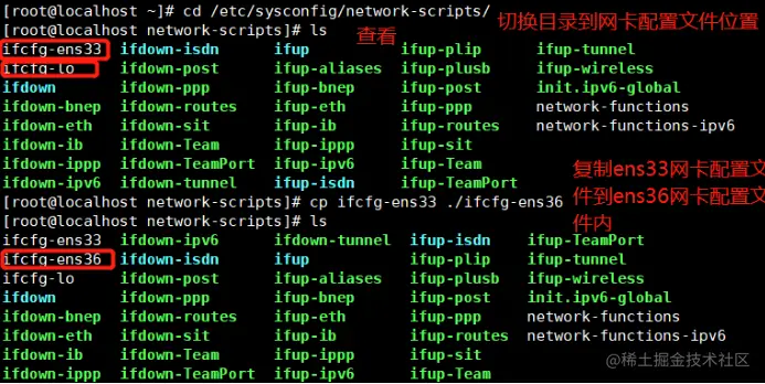 - 复制ens33网卡配置文件到新建网卡配置文件内