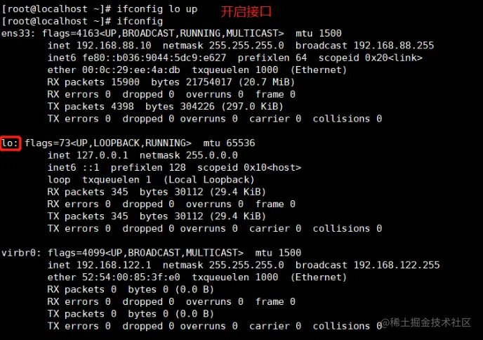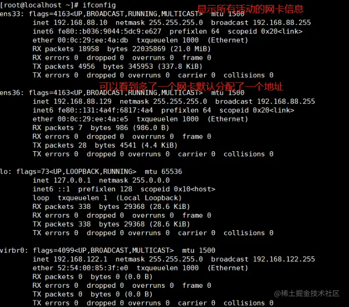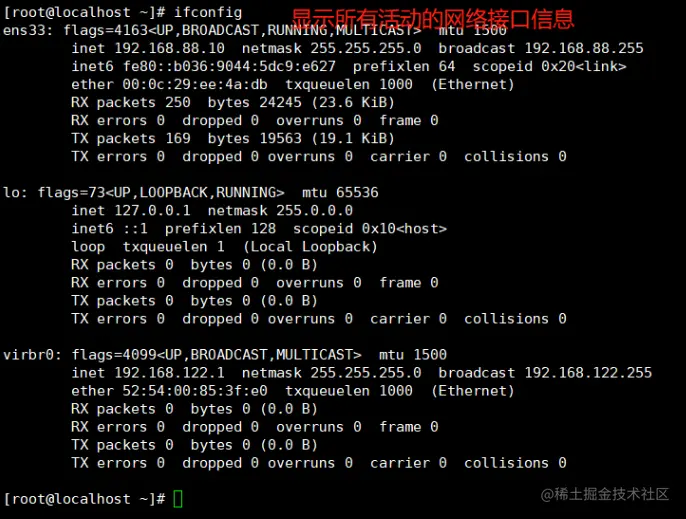 ifconfig -a 表示显示所有网卡包括没有启动的网卡