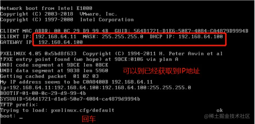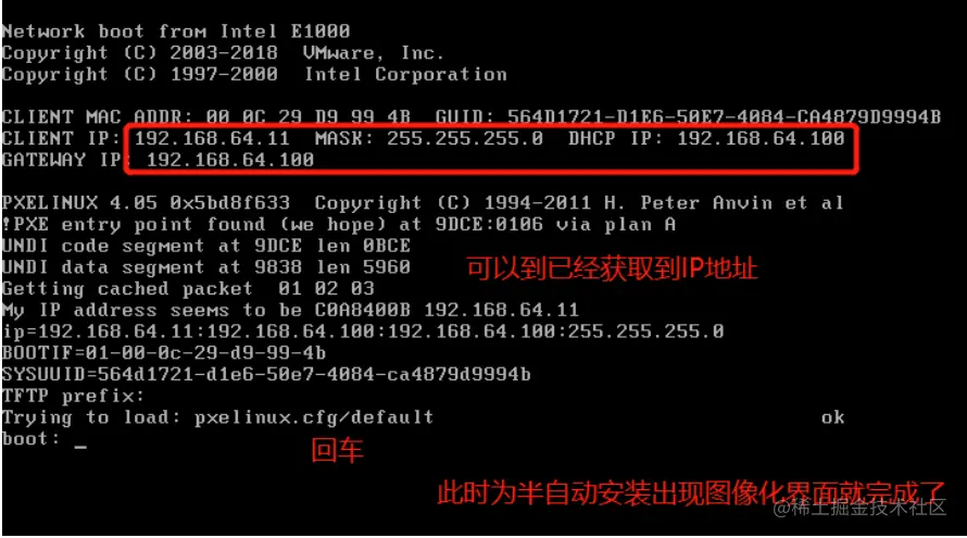 2.找到后dhcp服务器提供ip地址,和引导程序(boot loader)的地址 还提供给客户机TFTPserver地址(dhcp本身不提供tftp服务)