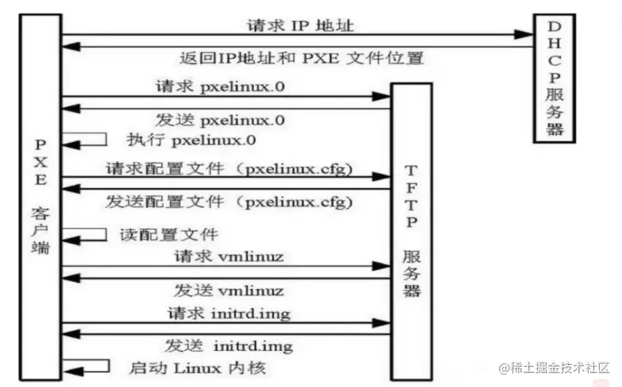 PXE(预启动执行环境)是由Inter公司开发的网络引导技术,工作在Client/Server模式,允许客户机通过网络从远程服务器下载引导镜像,并加载安装文件或整个操作系统