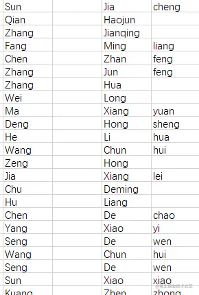 今天拿到实验的数据,要进行一些数据处理。将中文名改成拼音并需要将姓氏首字母和名字首字母大写,中间加空格。类似如下:
