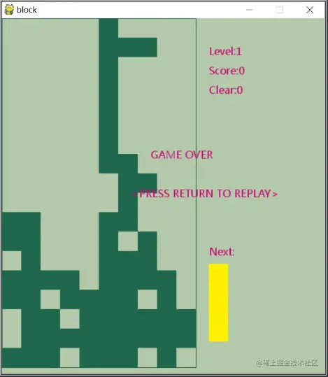 #每次生成新的下落方块形状时检测碰撞,如果新的方块形状一出现就发生碰撞,则显然玩家已经没有机会了。