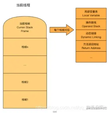 JVM中的虚拟机栈是描述Java方法执行的内存区域。栈中的元素用于支持虚拟机进行方法调用,方法调用的过程对应的就是栈帧从入栈到出栈的过程,也就是可以理解为一个Java方法对应虚拟机栈中的一个栈帧。