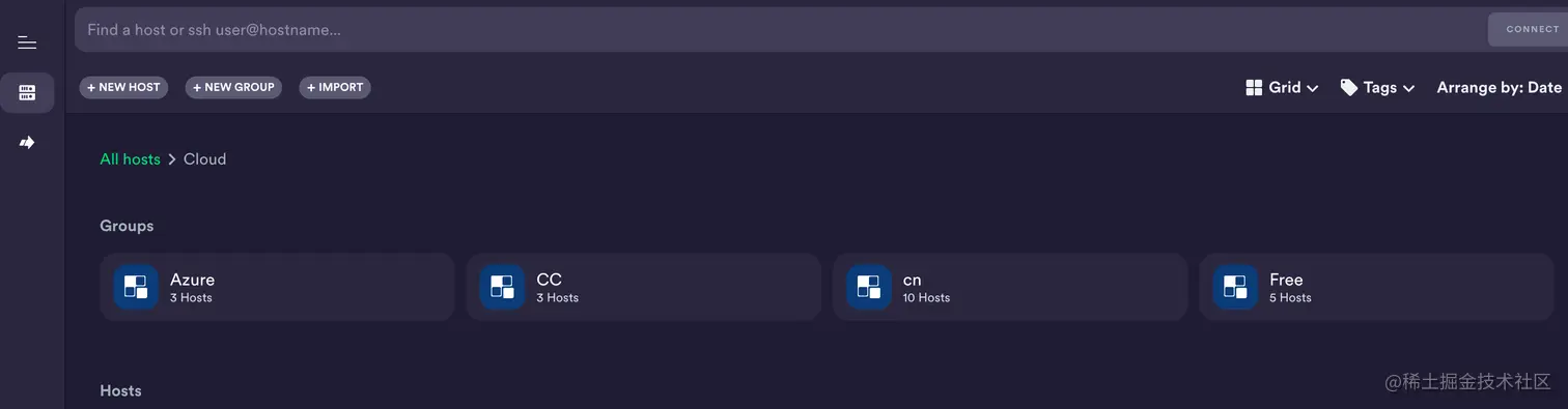 支持分组-这点不错,不过跟Termius还是差点体验,Termius多层嵌套分组,哈哈,不过开源,想加可以自己动手