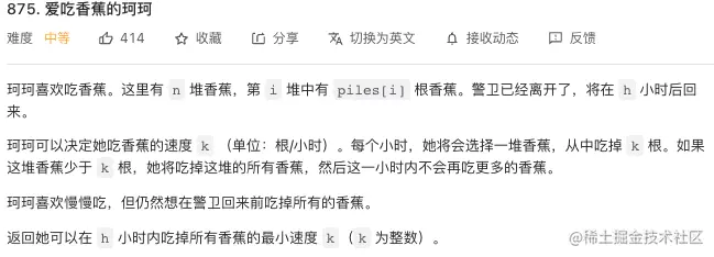 需要注意的是,注释1处没有像往常一样进行越界判断,而是直接返回left,这是因为题目不需要吃完香蕉的时间刚好等于h,只需要无限接近于h即可。