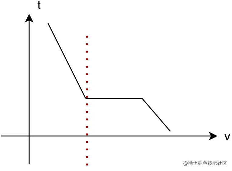 先来分析计算吃香蕉所需时间的函数time(v),其图像如下图所示,可以发现,其呈现出了一种单调性,在一定范围内,速度越快,所需时间越短,但存在一定的”瓶颈期“,也就是图中横线所在位置。