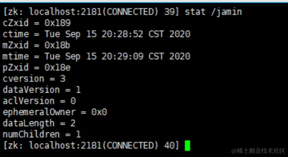 delete /jamin删除所有子节点deleteall /jamin - 查看子节点