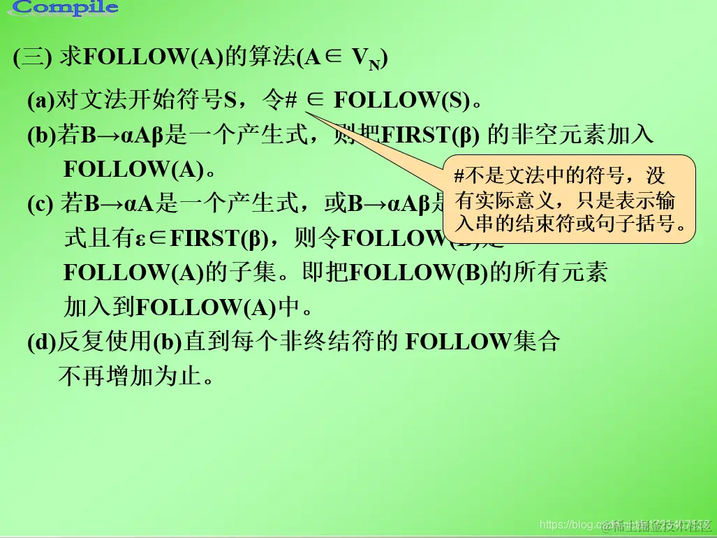 static HashMap<Character, HashSet<Character>> FollowSet = new HashMap<>();// 构造FOLLOW集合