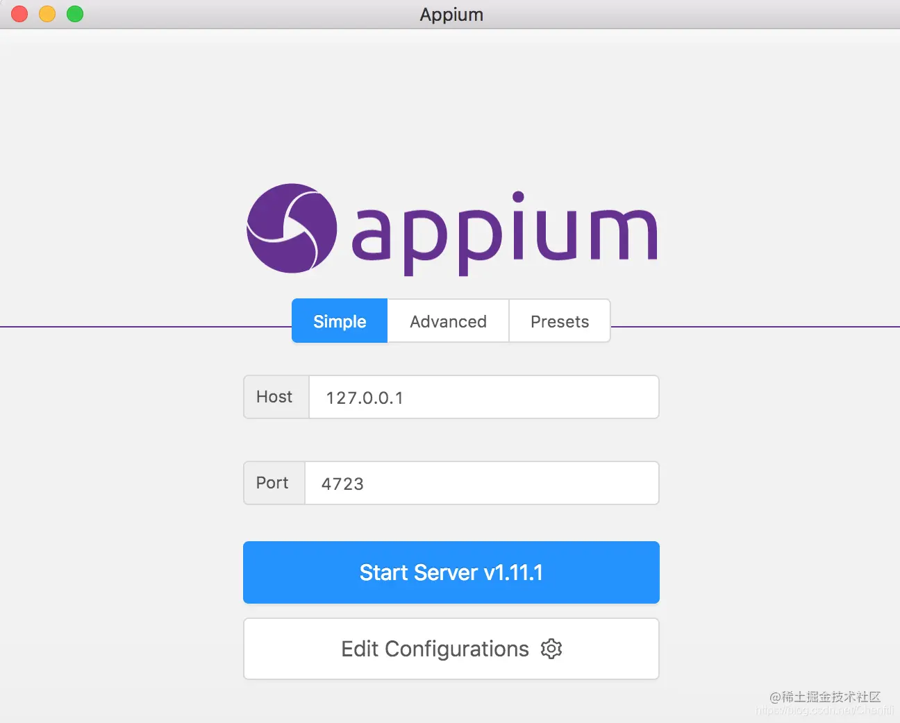 下载安装Appium-1.11.0.dmg。下一步配置运行的环境,需要在确保上面环境中安装完成且环境变量已经配置完成。看到如下界面: