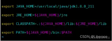 export JAVA_HOME=/usr/local/java/jdk1.8.0_211 (路径要跟自己的jdk存放的路径一致)