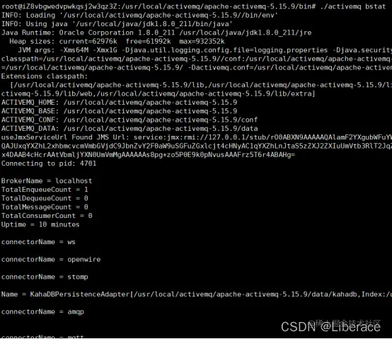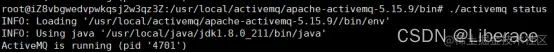 ./activemq status 显示当前的ActiveMQ是否运行正常,并且能显示pid。
