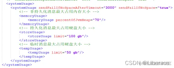 参数类型是boolean类型,默认值是true,是否持久化。 true表示持久化,需要与元素persistenceAdapter结合使用。 false表示非持久化,重启后消息会丢失,且十分消耗内存(persistent这个参数,通常我们不会在xml配置文件中设置,在项目中进行设置就可以)