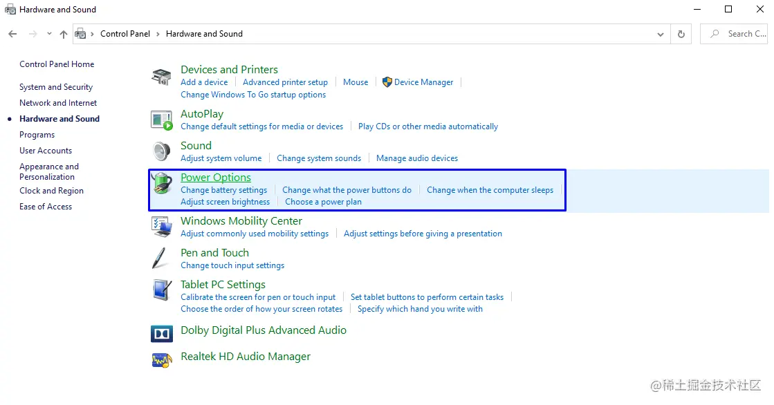 **第3步:**转到 "电源选项"。现在,我们将改变我们的Windows的电源计划设置。